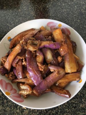 炒锅烧热后放适量油,五六成热时下肉末煸炒,变白时下入葱姜蒜末煸香,然后下入剁碎的豆瓣酱炒香。 随后淋入少许料酒,再加少许生抽提色,倒入茄子翻炒均匀,然后加一点热水,盖上锅盖焖三分钟,待锅中汤汁快收完时加少许鸡粉,炒匀关火。
