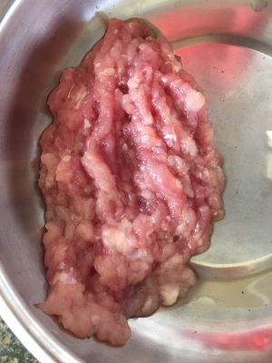 用烧水的过程,把肉剁碎。然后放入碗中,加入盐,鸡精,胡椒粉,料酒,少许酱油,腌制(sorry,腌制的图片忘记拍了)