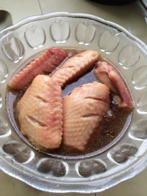 用小刀把鸡翅切几个口!好让酱汁能够渗透里面去!