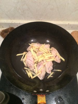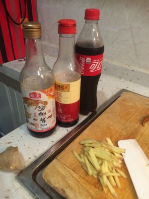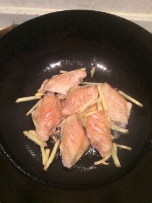在抄水的过程中切姜丝 。。可乐和姜是绝配 我觉得其他调料根本不需要加 。因为 。加了会影响可乐鸡翅的味 。好吃的东西 味道往往都很单纯 !