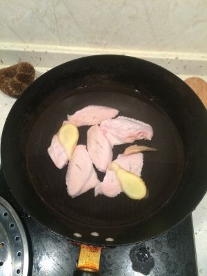 鸡翅根洗净,加入生姜水里煮1-2分钟。