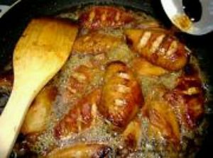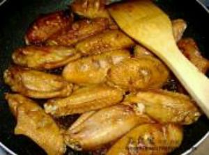 锅中放入少许油烧开,把鸡翅倒入煎至金黄色!