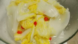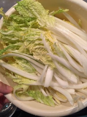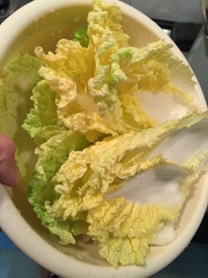 1.娃娃菜每片掰开,洗净后放入煮锅焯烫3分钟关火盖盖儿闷置