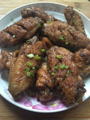 平底锅加热,放入鸡翅,有皮处都煎一煎,边煎边擦掉锅里油脂。