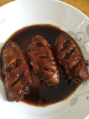 用刀在鸡翅上面划几痕道道,正反面都要,这样更入味而且比较容易煮熟。