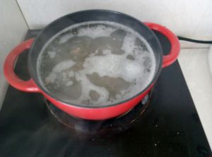 继续放入粉丝、待粉丝变成透明放入豆腐 盖盖煮一小会儿,出锅是加入食醋。大功告成。