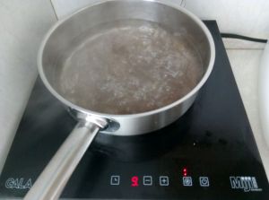 锅内烧水,水开后煮地瓜粉,7分钟,捞出入冷水待用。