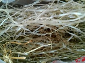 用烫过木耳的开水把红薯粉丝煮至九成熟,捞出沥水,放入香油挑拌松弛,以免粘连在一起。