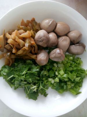 榨菜,葱花,香菜,鹌鹑蛋