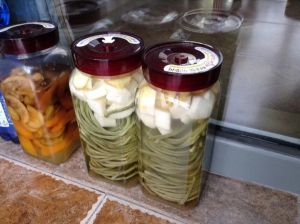 把烧开凉凉的水放到罐里把要泡的菜放进去。