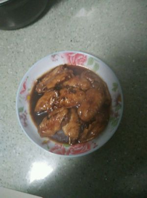 放入八角和生姜段与煎好的鸡翅翻炒半分钟,加入料酒两勺老抽一勺可乐一瓶,盐和适量的糖。大火煮沸后小火慢炖十分钟左右,收汁即可。