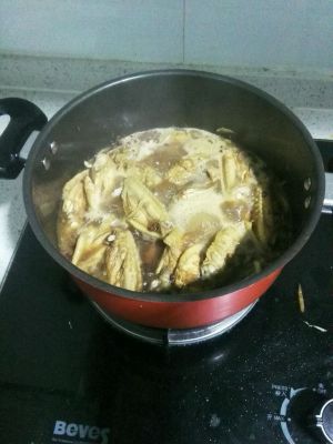 葱姜大料爆香,放入鸡翅煸成焦黄!