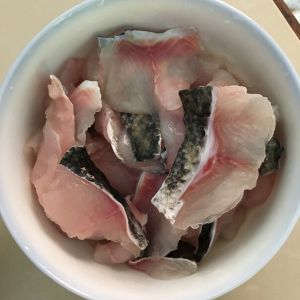 把鱼肉切片,不要太厚否则不入味,太薄容易烂。鱼骨头切块