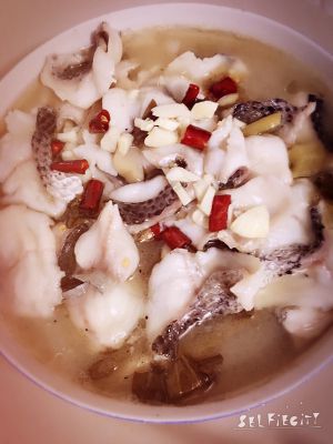 汤煮出味,开始放鱼头,稍煮一会,开始下鱼骨头,最后放鱼片,一片片放完,煮4分钟左右放上适量盐和鸡精即可出锅