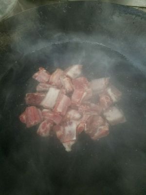 1、 排骨剁成两寸长短,下锅焯掉血沫,