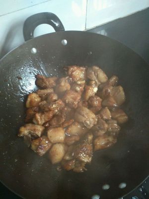 熬制20分钟。再加入冰糖炒上色。然后收汁,加芝麻和小葱