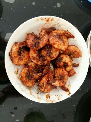 我比较喜欢先用油把五香八角之类的大料煎下(立马捞掉),然后放入虾炒熟,最后用水焖汁出锅。