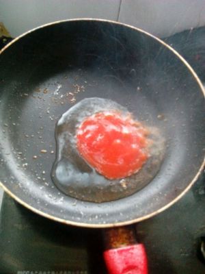锅内到底油,加入番茄酱,放入姜蒜沫。