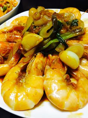 继续翻炒2分钟左右,至虾肉均匀裹上酱汁,即可出锅。