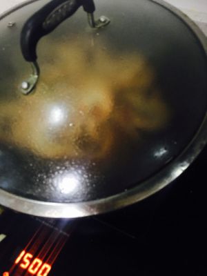 下料汁,大火烧开,盖上盖子,转小火焖煮2分钟