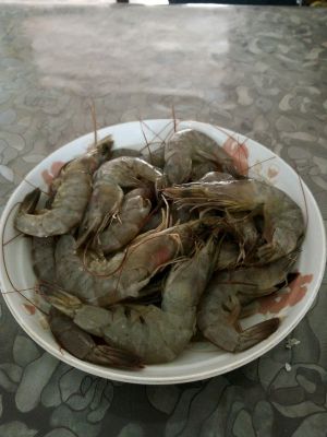 虾洗干净,去黑线,剪虾须,剪虾头刺