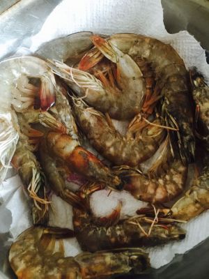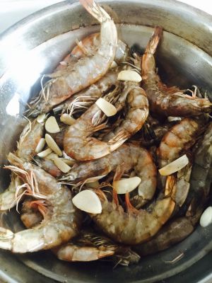 一大早去菜市场买的大虾,去头,去肠,去沙线,加料酒,姜蒜末,腌制