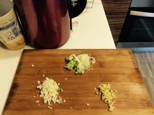 准备葱姜蒜,网上的帖子都说要切片,但是我试了一下切碎碎,感觉进味更加速度且彻底