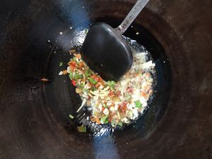 起锅时放入鸡精和葱花翻炒均匀即可!