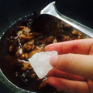 第四步:锅中加水没过鸡块,加入一小块冰糖