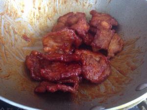 把肉片再下锅里 放适量番茄酱上色