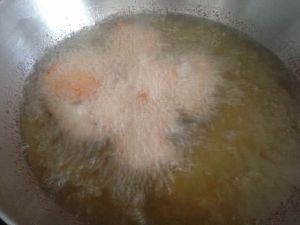 五成热,下锅炸,中小火即可。50秒左右