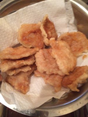 这样反复炸2-3次,至肉片炸熟。