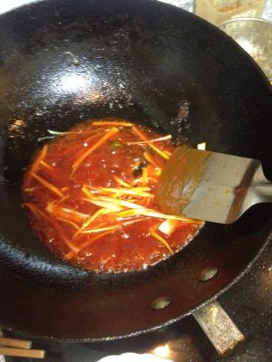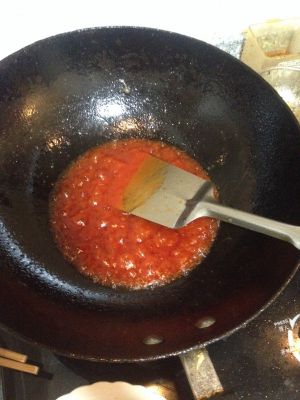 留底油,放入番茄酱,少糖,醋,根据自己口味