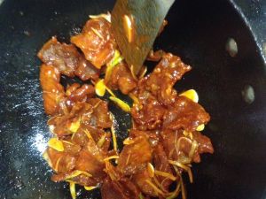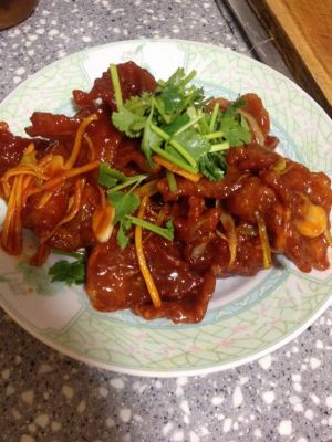 肉片炸好后 捞出等油温稍高些 再全部下入锅内炸1-2分钟 切记不要炸糊了 成品是这样的