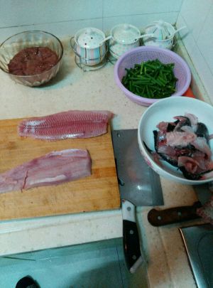 第一步 宰鱼 切薄片 用蛋清鱼露腌制待用