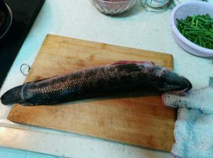 洗鱼,注意洗净腹腔中的黑膜,剪去鱼翅