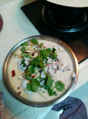 鱼骨鱼头酸菜加水先煲汤,10分钟再下豆腐鱼,8分钟后下花蛤,乌冬面,豆芽,2分钟后下鱼片,滚后鱼片变白色下黄瓜,红辣椒圈,芹菜粒,葱圈,柠檬,最后淋上辣椒油即可。因为不会吃辣,没下太多辣椒,没有蒜头,改用葱油。准备材料比较费时