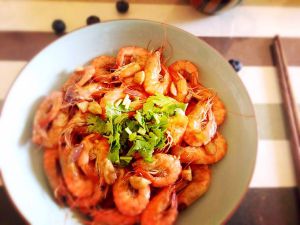 虾油中放入葱姜蒜爆香,倒入对虾翻炒,加入料酒,生抽,白糖,加水至刚刚没过虾,盖上锅盖