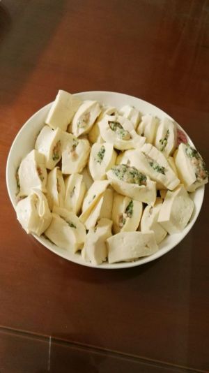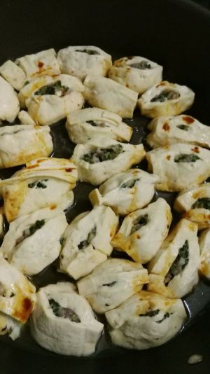 酿好后下锅剪至有点金黄色放一点点水盖上锅盖煮一下 快好放点生抽就可以出锅了