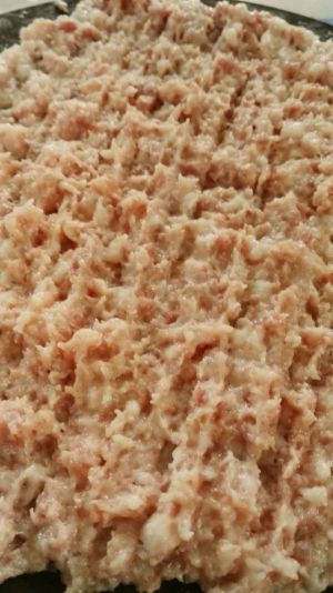 把肉洗干净后剁碎 最好买夹心头的肉比较好吃