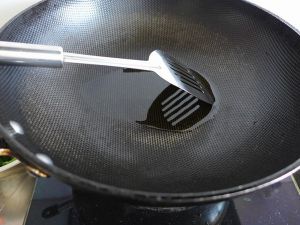 烤箱剩余时间10分钟时,在炒锅内放入少许橄榄油;