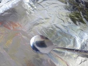 在锡箔纸上面涂抹一勺橄榄油,约5克;