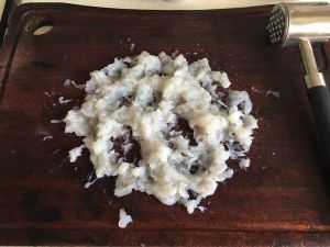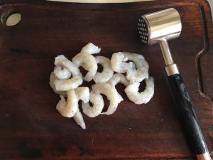 用肉锤咋成虾肉泥,或者用刀剁成泥