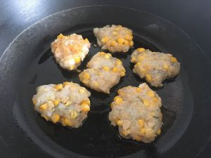 馅料充分搅拌混合,分成若干份,随意捏成饼状,大小薄厚不要相差太多,平底锅里刷一层油,中小火两面各煎几分钟即可,虾肉好熟