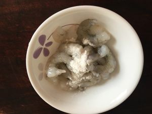 虾仁用淀粉和盐腌渍一下,用清水洗净