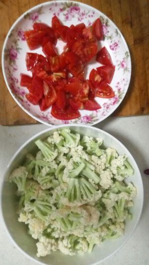 菜花洗净切小块,最好拿水泡一会,水里放些盐,便于成熟