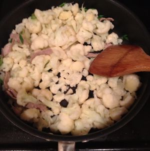 锅中烧开水,放入菜花煮2分钟,再捞出厉干待用