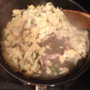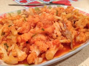 加盐和鸡精,一直翻炒菜花至出水再加生抽,这道菜不用加水,否则菜里的生味会出不来。
