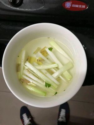 这时候,把切葱丝,姜丝放入碗中加水,泡制葱姜水。