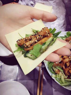 拤饼卷肉丝简直标配啊!吃完感觉自己萌萌嗒!